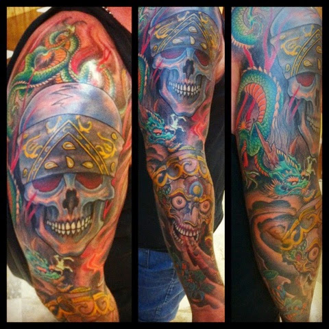 This was a great customer, he said he wanted his tattoo covered with something "skulls' so this is what he got. I always forget to take a picture just before starting, or with the outline just finished. He did say he wanted to get more added on so I am excited about that, and also to see how it heals up!